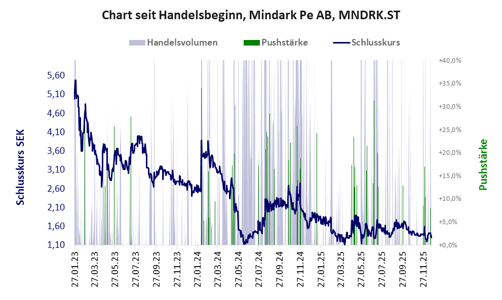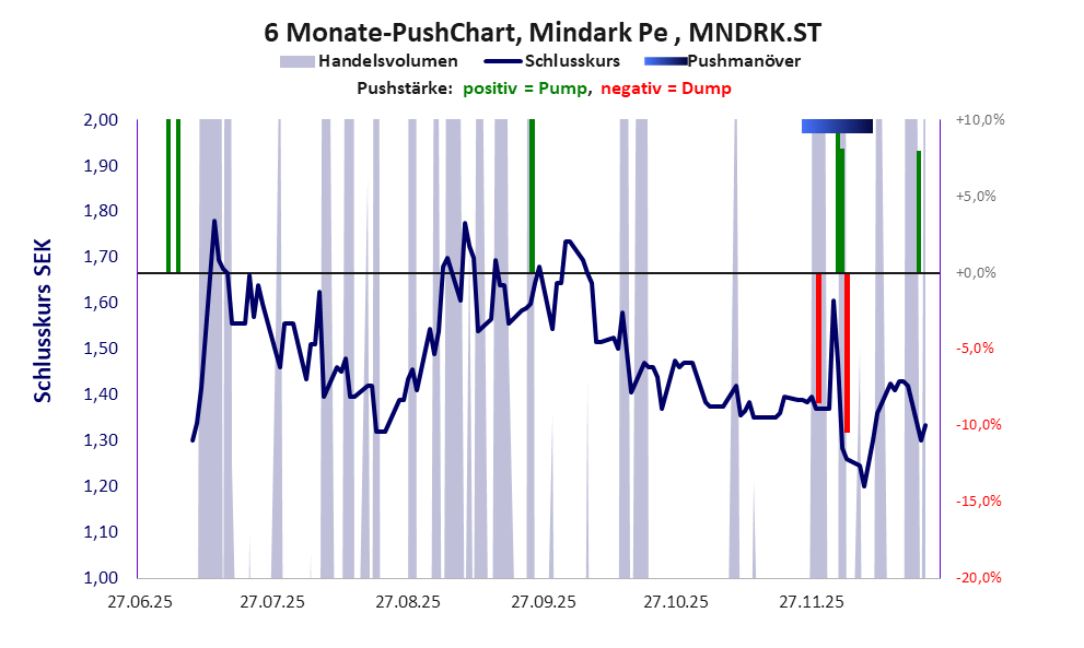 Die Pushstärke ist umso höher, je stärker die Kurse vom durchschnittlichen Verlauf abweichen und daher ein Verdacht auf Kursmanipulation besteht.