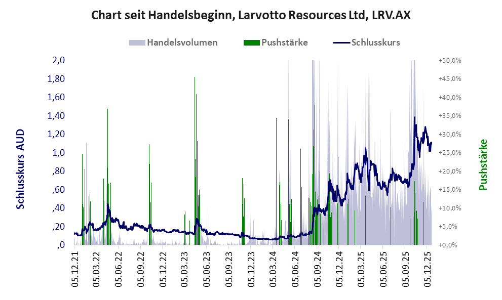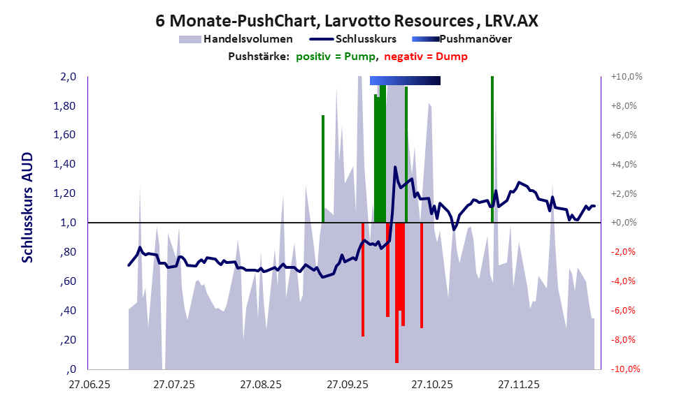 Larvotto Resources ist ein kmU mit einer Pusher-Aktie der Klasse III und den Eckdaten: