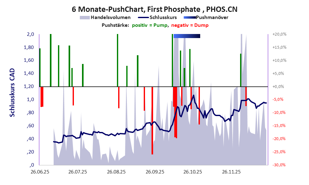 zeigt <abbr class='c2c-text-hover' title='bei einem Pushmanöver treiben Akteure und Medien den Aktienkurs manipulativ kurzfristig zum eigenen Vorteil nach oben.'>Pushmanöver</abbr> während der letzten sechs Monate