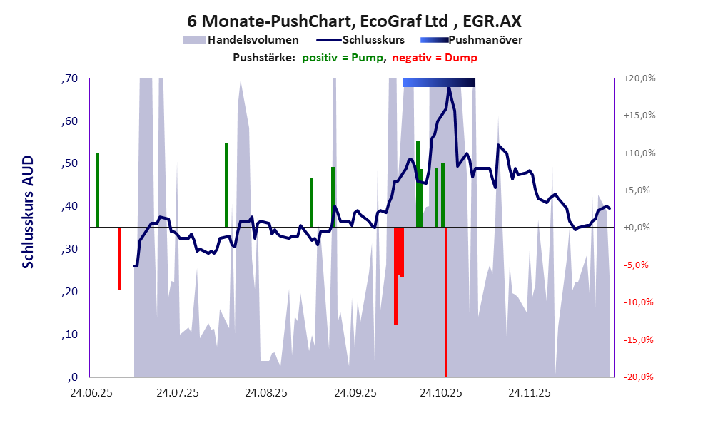 zeigt <abbr class='c2c-text-hover' title='bei einem Pushmanöver treiben Akteure und Medien den Aktienkurs manipulativ kurzfristig zum eigenen Vorteil nach oben.'>Pushmanöver</abbr> während der letzten sechs Monate