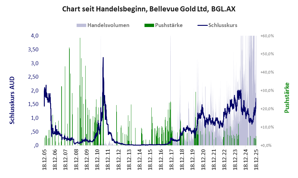 Bellevue Gold ist ein Unternehmen mit einer Pusher-Aktie der Klasse II und den Eckdaten:
