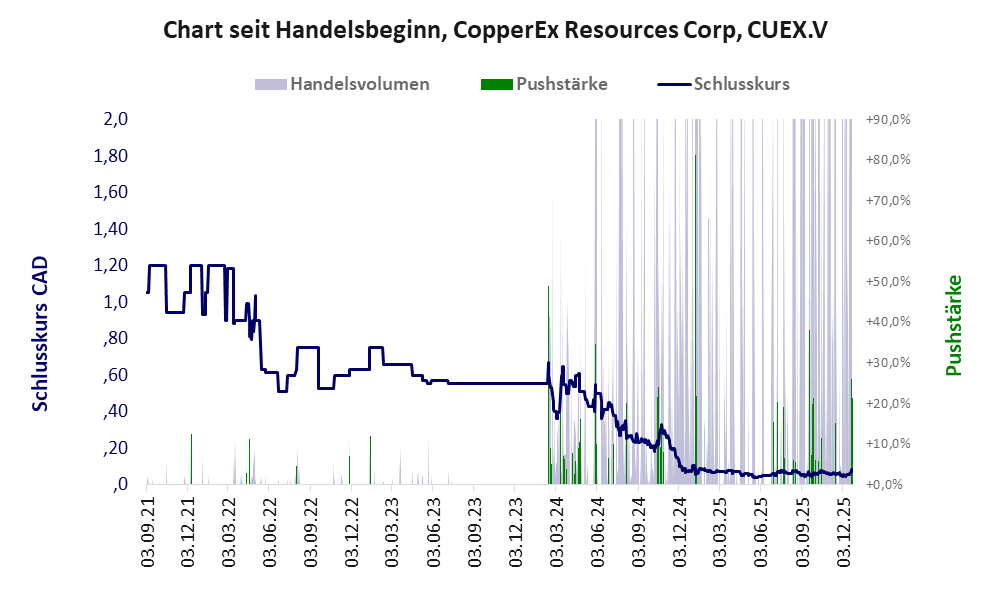 CopperEx Resources ist ein Winzling mit einer Pusher-Aktie der Klasse III und den Eckdaten: