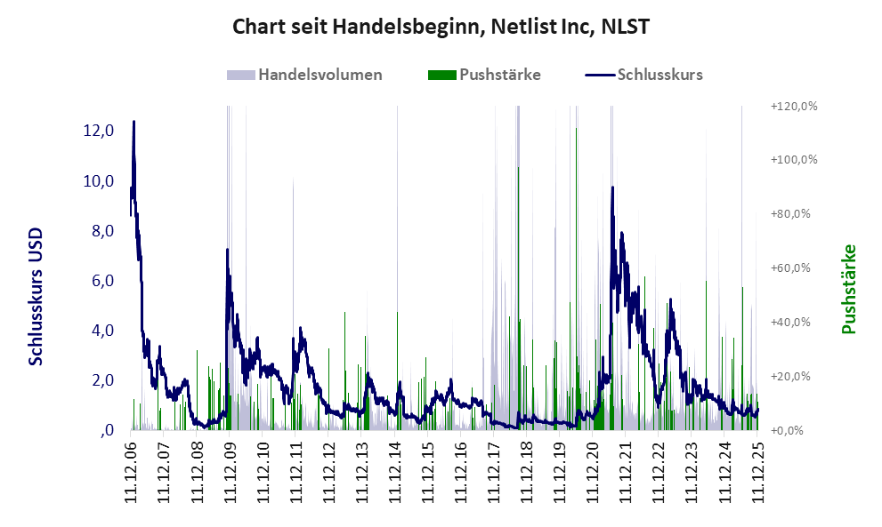 Der Aktienkurs sinkt weiter. Der Quartalsbericht Q1/2025 ändert nichts, nur ein Pushing im März 2025 sorgt für etwas Anstieg ehe der Sinkkurs weitergeht. Bei dieser Aktie liegt das „Inkassomodell“ vor, bei dem der Aktienkurs zu Beginn der Geschichte sein Allzeithoch hat. Die Akteure verkaufen schon zu Beginn nach und nach ihre billigst erworbenen Aktien, so dass der Kurs in verhältnismäßig kurzer Zeit abstürzt. Danach dümpelt der Aktienkurs in den meistn Fällen nahe null dahin und die Aktie dient nur noch kleineren, dennoch gewinnbringenden Pushmanövern und in vielen Fällen dem Algotrading. Dem ersten Einbruch nachfolgende größere Pushmanöver sind aber nicht ausgeschlossen. Bei dieser Aktie vollzogen die Akteure mindestens einen Pump & Dump und leerten damit ganz gezielt die Taschen der Anleger. Obwohl das Vorgehen rechtswidrig ist, erfolgt kaum je eine Strafverfolgung.
