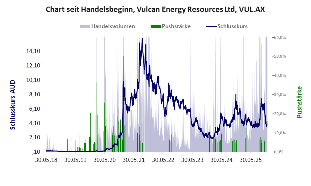 Keine Pusheraktie, aber gepushte Kurse, deren Treiber unbekannt sind. Solider Mittelständler auf der Suche nach den notwendigen Milliarden für das Lithium-Projekt im Rheintalgraben. Die Chancen scheinen gut zu stehen, Scheitern ist dennoch nicht ausgeschlossen.