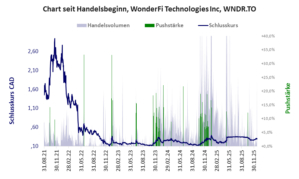 WonderFi (ein Mitglied der Crypto-Szene) wurde von Robinhood Markets Inc zum Übernahmepreis von 250 Mio. CAD in Cash geschluckt. Der Kaufpreis von 11% der WonderFi-Bilanz und einem NAV von 102 Mio. CAD ist ein Schnäppchen für Robinhood Markets. Die Ankündigung der Übernahme pushte den Aktienpreis von WonderFi um 140%.