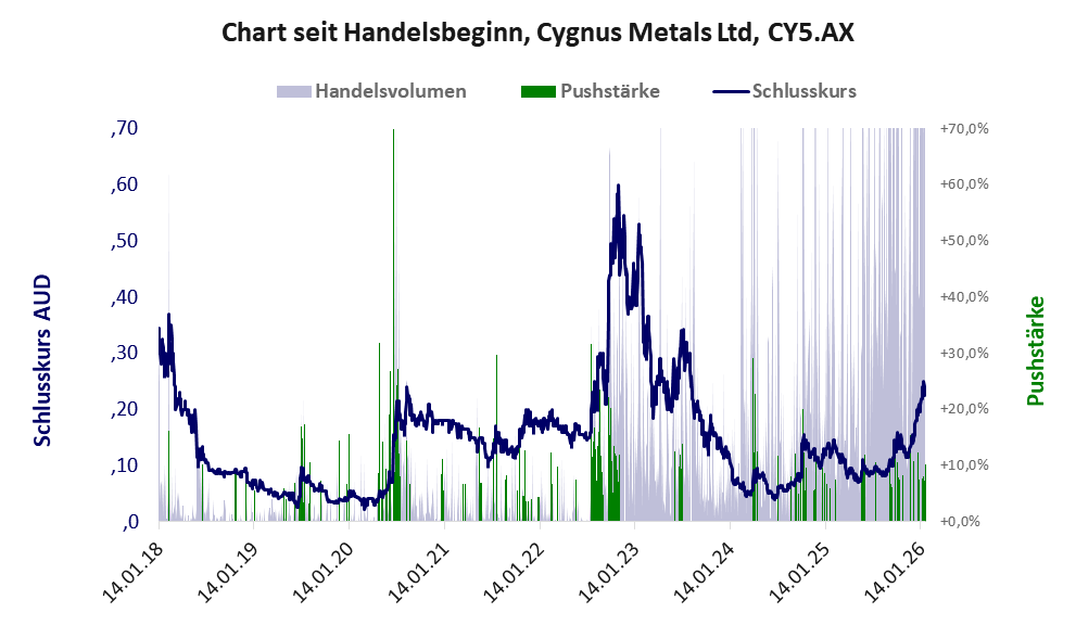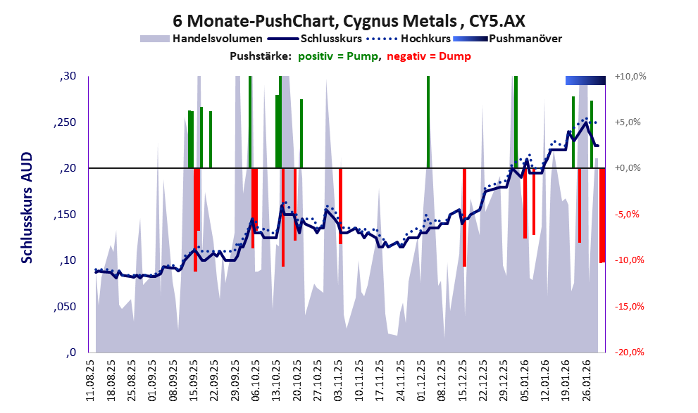 Anfang 2025 kaufte Cygnus alle Anteile der Dorè Copper Mining „zur Bildung einer bedeutenden Bergbaufirma„. Es wird jedoch aus zwei kleinen Mittelständlern ohne Produktion keine bedeutende Bergbaufirma. Entstanden ist ein KMU, das weiters weder Umsatz noch Profit macht, aber den Kurs – zwar auf niedrigem Niveau – verdoppelte. Erwartungen in die Aktie sind nicht angebracht.
