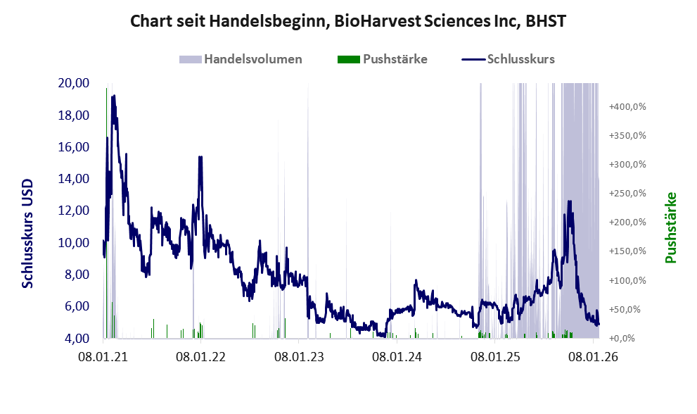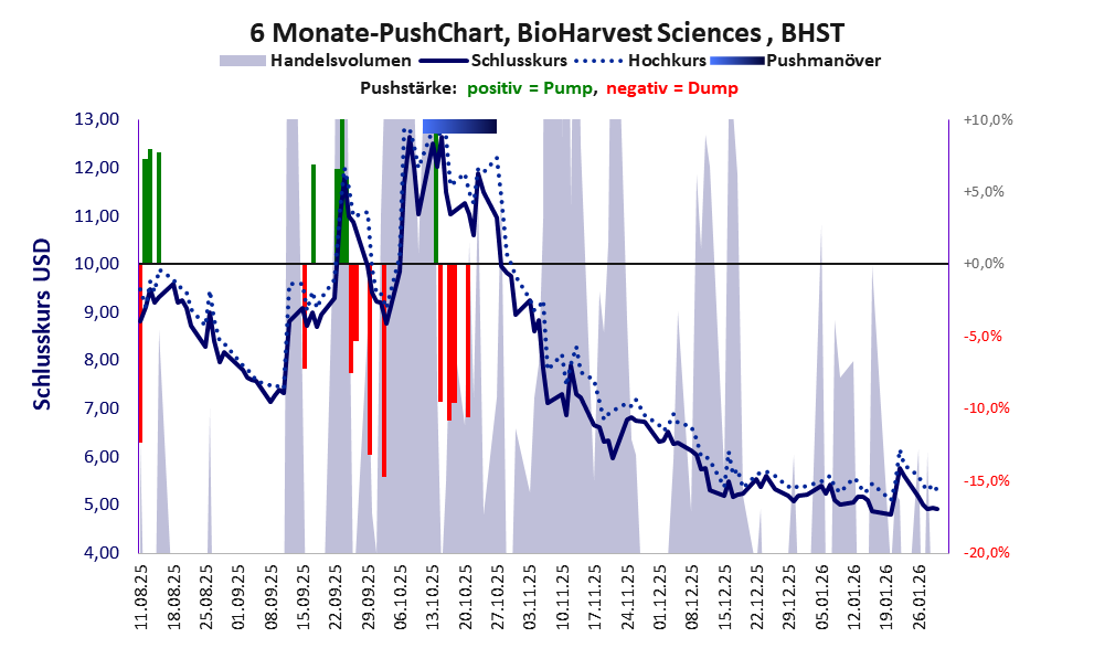 Ein kleiner, stark defizitärer Mittelständler im Cannabis-Geschäft, der im Juni 2024 seine Aktien1: 35 konsolidierte und an der FWB einbezogen wurde. Im Herbst 2025 folgte ein weiteres großes Pushmanöver.