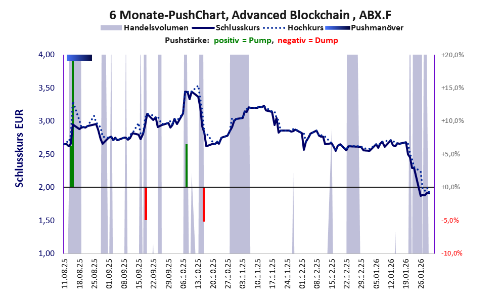 Ein kleiner Mittelständler mit schwachen Finanzdaten, aber großem Marketing und einem Kursverlauf, der Pushindikationen ausweist.