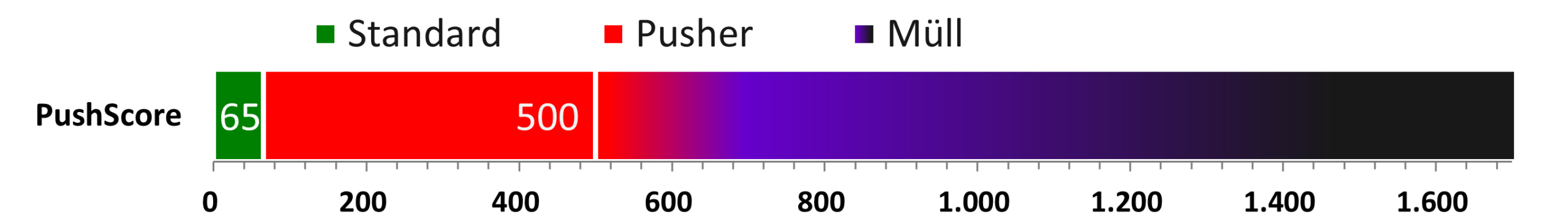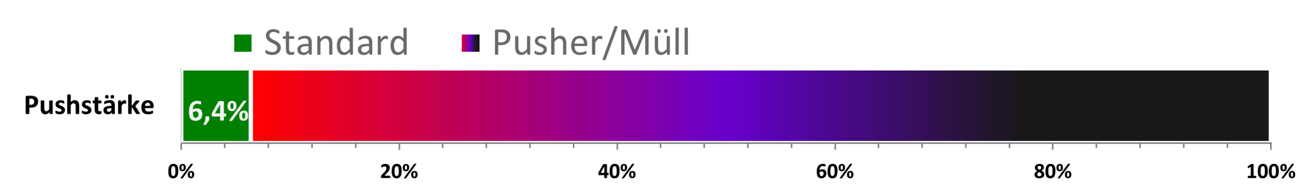 Mit der Pushstärke wird erfasst, wie stark Handelskurse innerhalb einer definierten Zeitspanne von dem über eine längere Zeitspanne gültigen Durchschnitt abweichen. Das Ergebnis der bisherigen Auswertungen ergab einen Schwellenwert von 6,4 Prozent, der Standardaktien von Pusher- und Müllaktien trennt.