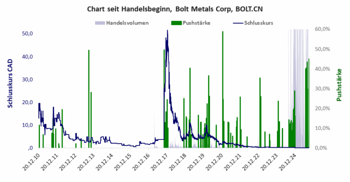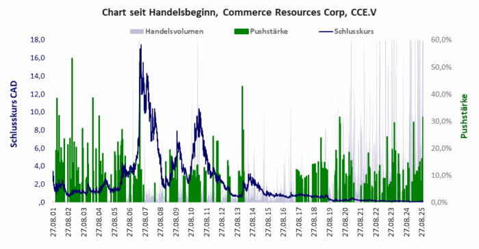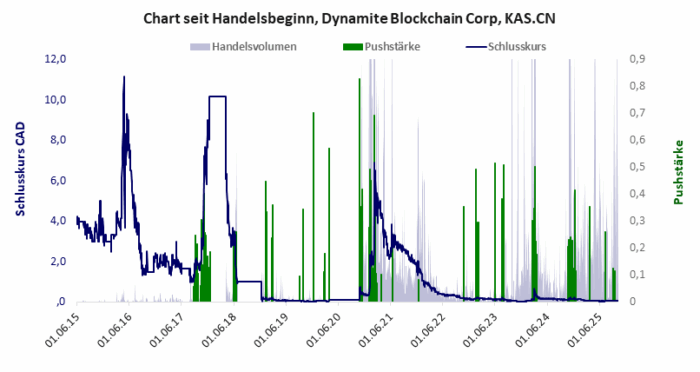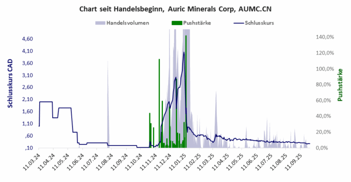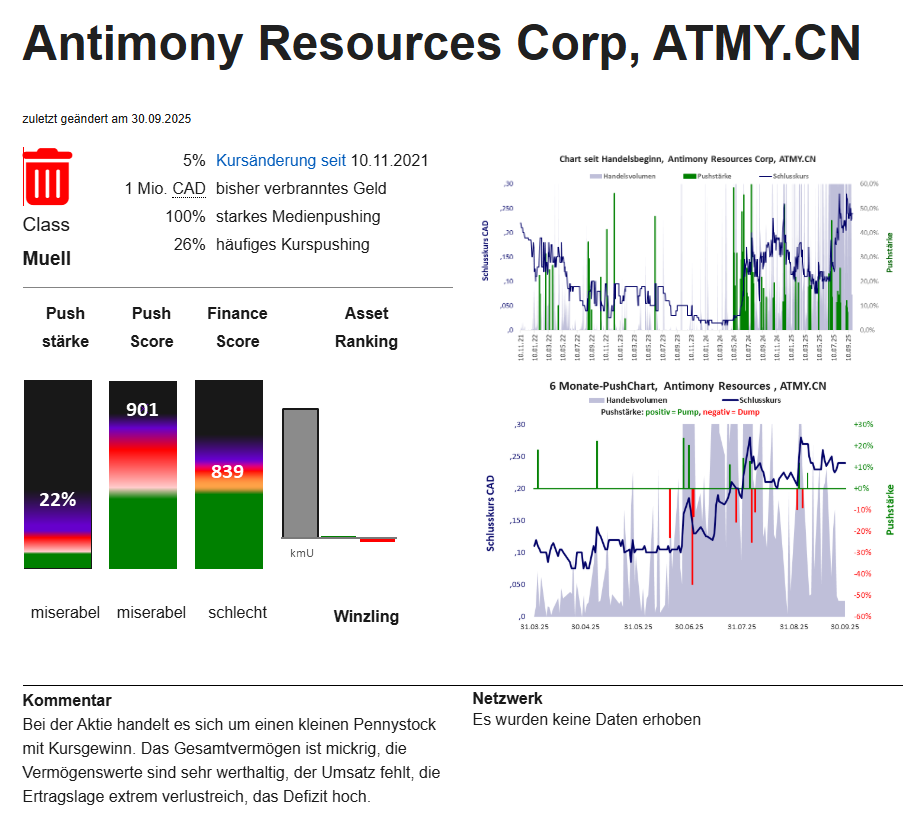 Die PushCard beseitigt praktisch jeden Zweifel an der Natur einer Aktie, denn sie ist wie ein sicherer Ausweis. Ein Blick erklärt mehr als alle Zahlen, wenn man beispielsweise auf die PushCard der Antimony Resources schaut. Schon die Pushstärken im Langzeitchart ab Mai 2024 machen deutlich, dass der Kurs gepusht wurde, und …