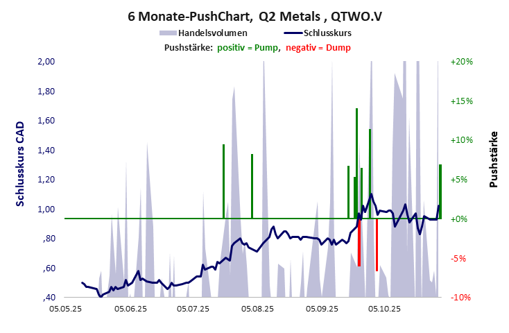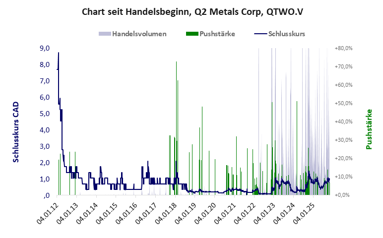 Q2 Metals hat ein schwaches Gesamtscoring und ist eine billige Aktie mit einem riesigen Kursverlust. Das Gesamtvermögen ist beträchtlich, die Vermögenswerte scheinen sehr werthaltig zu sein, der Umsatz ist nicht existent, die Ertragslage extrem verlustreich, die Geldverbrennung erträglich.