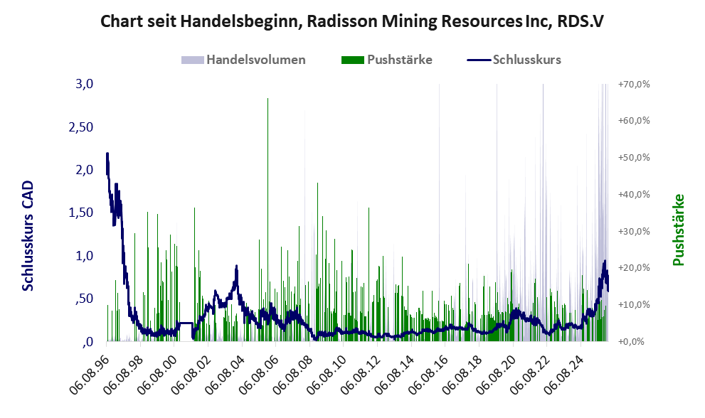 Radisson Mining ist ein KMU mit einer Muell-Aktie der Klasse V und den Eckdaten: