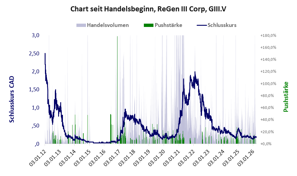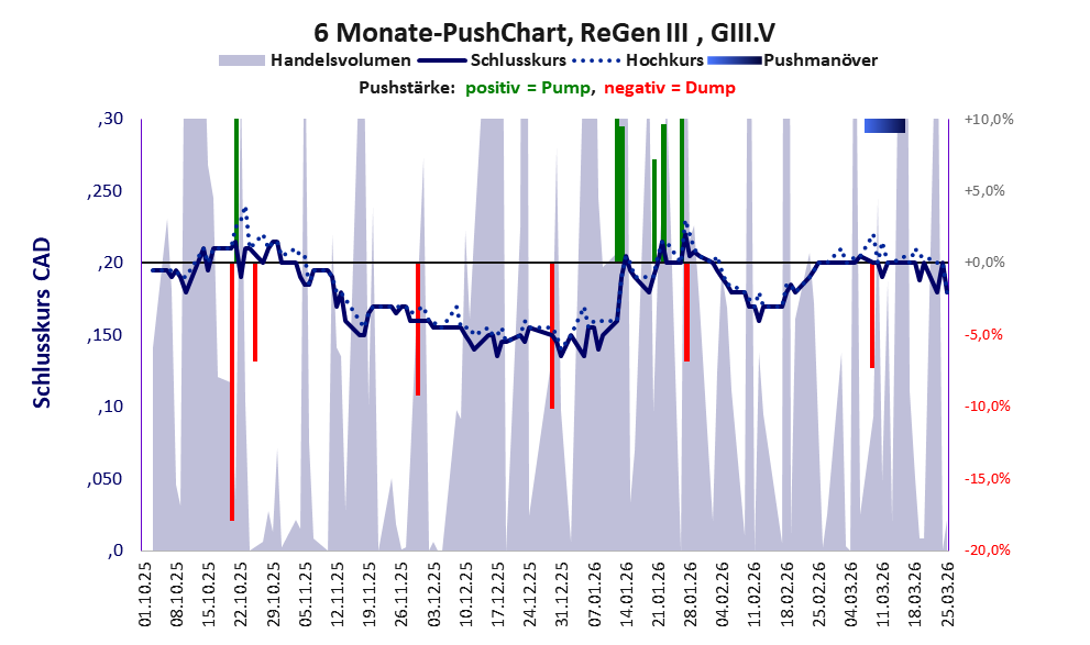 Bei dieser Aktie, über die w:o berichtet, liegt das Refreshmodell und das Inkassomodell vor und es gibt 1 Pump & Dump-Manöver. Das tägliche Handelsvolumen betrug an obiger Börse während der letzten drei Monate bis Berichtsdatum: 83.588 Stück, das sind 0,1% der ausgegebenen Aktien. In Aktien der Klasse V darf man grundsätzlich nicht investieren. Es gibt keinen ordentlichen Geschäftsbetrieb. Die Aktie hat nur den Zweck, mit Pushmanövern oder Algotrading an der Börse Kasse zu machen.