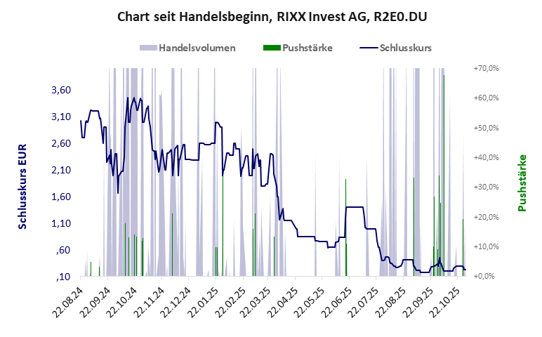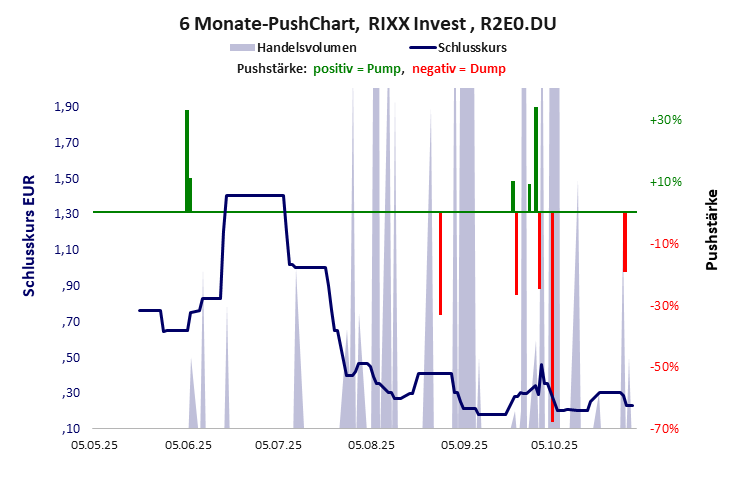 Wertloses Unternehmen, erfolglos gepushter Kurs, ein NO GO! RIXX Invest hat ein inakzeptables Gesamtscoring und ist ein kleiner Pennystock mit einem riesigen Kursverlust. Das Gesamtvermögen ist karg, die Vermögenswerte scheinen nicht vorhanden zu sein, der Umsatz ist nicht existent, die Ertragslage extrem verlustreich, die Geldverbrennung sehr hoch.