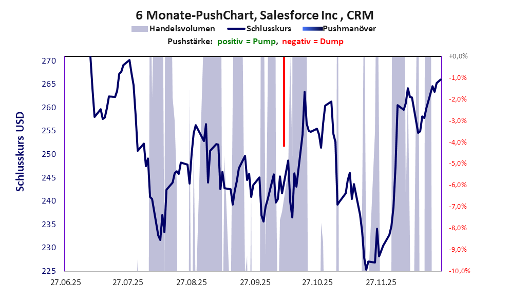 Die Pushstärke ist umso höher, je stärker die Kurse vom durchschnittlichen Verlauf abweichen und daher ein Verdacht auf Kursmanipulation besteht.