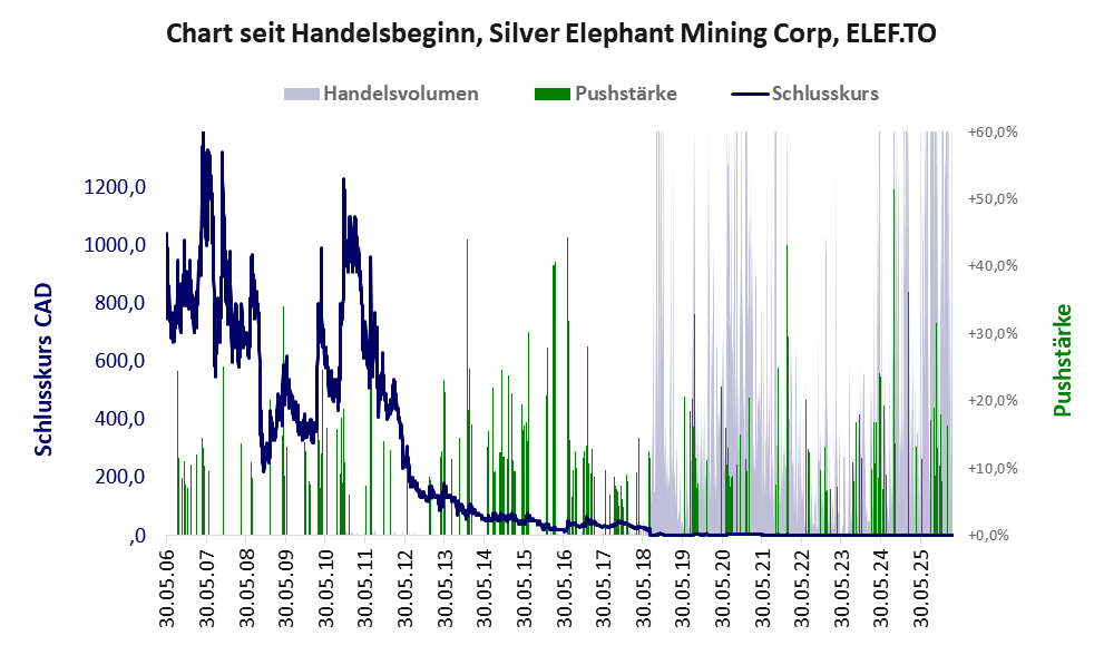 Bei dieser Aktie, über die w:o berichtet, liegt das Refreshmodell und das Inkassomodell vor. Das tägliche Handelsvolumen betrug an obiger Börse während der letzten drei Monate bis Berichtsdatum: 159.803 Stück, das sind 0,3% der ausgegebenen Aktien. In Aktien der Klasse V darf man grundsätzlich nicht investieren. Es gibt keinen ordentlichen Geschäftsbetrieb. Die Aktie hat nur den Zweck, mit Pushmanövern oder Algotrading an der Börse Kasse zu machen.