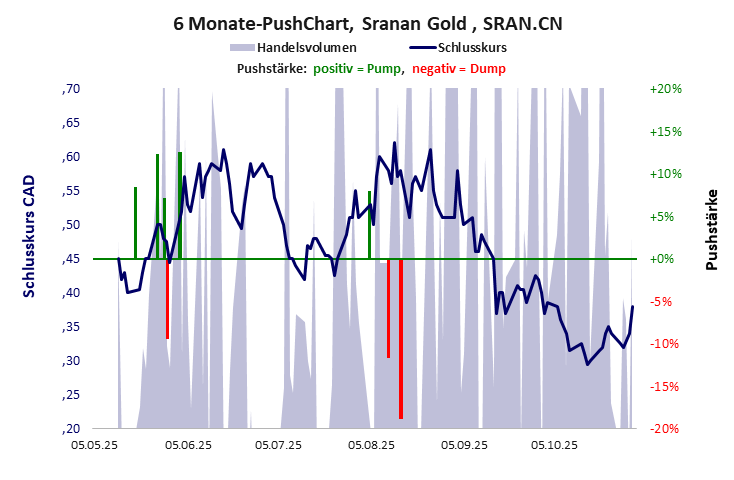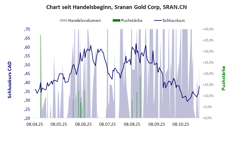 Sranan Gold hat ein sehr schlechtes Gesamtscoring und ist ein kleiner Pennystock mit Kursgewinn. Das Gesamtvermögen ist nahezu null, die Vermögenswerte scheinen nicht vorhanden zu sein, der Umsatz ist nicht existent, die Ertragslage extrem verlustreich, die Geldverbrennung extrem hoch.