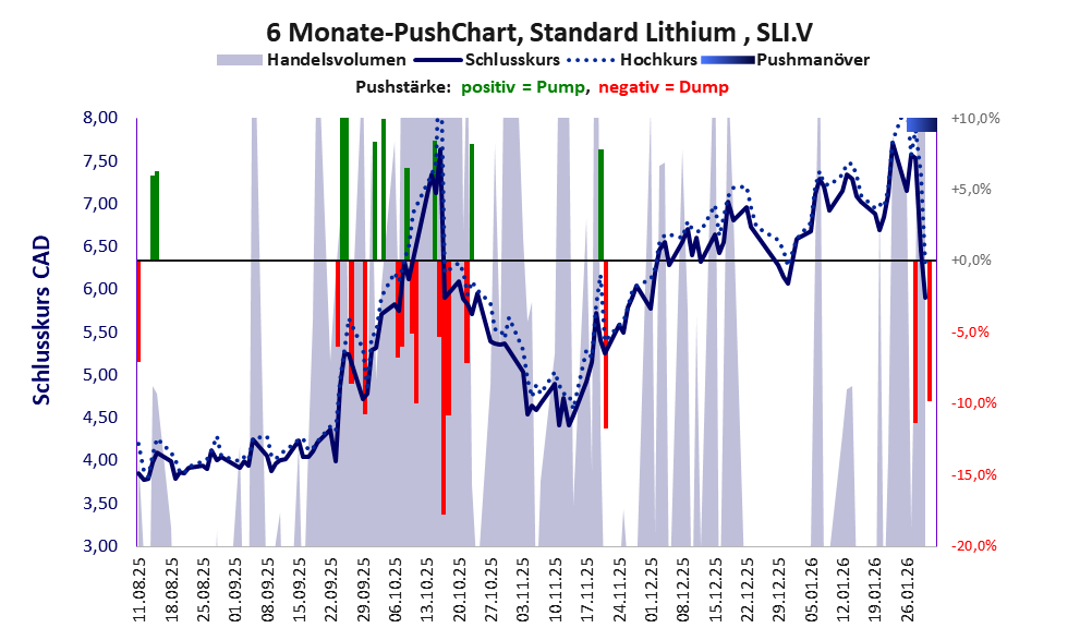 Zu Beginn 2026 herrscht der Glaube an Erfolg bei den Anlegern vor und treibt den Aktienkurs nach dem großen Push von Ende 2021 erneut hoch. Nach einer seit 1999 erfolglosen Tätigkeit des Unternehmens fällt es aber schwer anzunehmen, dass Standard Lithium den Glauben der Anleger erfüllen wird. Viel mehr wird die Erfolgslosigkeit von Pusheraktien bestätigt werden.