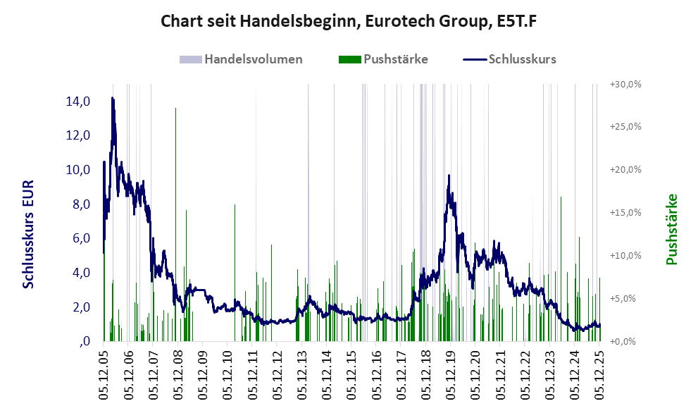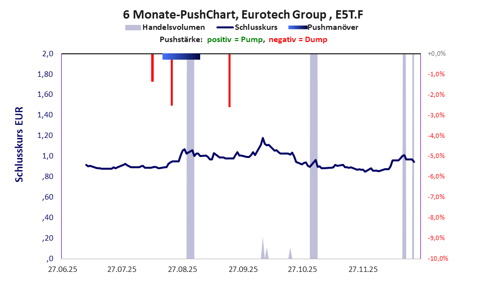 Bei dieser Aktie liegt das „Inkassomodell“ vor, bei dem der Aktienkurs zu Beginn der Geschichte sein Allzeithoch hat. Die Akteure verkaufen schon zu Beginn nach und nach ihre billigst erworbenen Aktien, so dass der Kurs in verhältnismäßig kurzer Zeit abstürzt. Danach dümpelt der Aktienkurs in den meistn Fällen nahe null dahin und die Aktie dient nur noch kleineren, dennoch gewinnbringenden Pushmanövern und in vielen Fällen dem Algotrading. Dem ersten Einbruch nachfolgende größere Pushmanöver sind aber nicht ausgeschlossen.