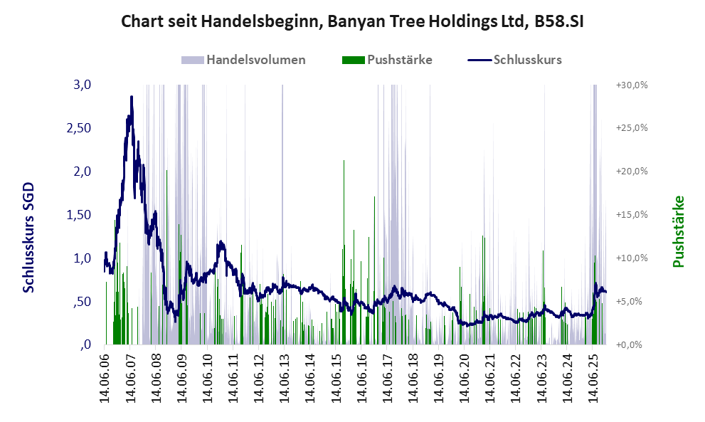 Bei dieser Aktie liegt das „Inkassomodell“ vor, bei dem der Aktienkurs zu Beginn der Geschichte sein Allzeithoch hat. Die Akteure verkaufen schon zu Beginn nach und nach ihre billigst erworbenen Aktien, so dass der Kurs in verhältnismäßig kurzer Zeit abstürzt. Danach dümpelt der Aktienkurs in den meistn Fällen nahe null dahin und die Aktie dient nur noch kleineren, dennoch gewinnbringenden Pushmanövern und in vielen Fällen dem Algotrading. Dem ersten Einbruch nachfolgende größere Pushmanöver sind aber nicht ausgeschlossen.