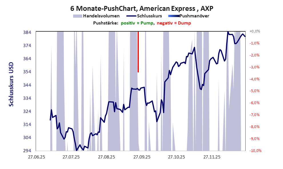 Die Pushstärke ist umso höher, je stärker die Kurse vom durchschnittlichen Verlauf abweichen und daher ein Verdacht auf Kursmanipulation besteht.