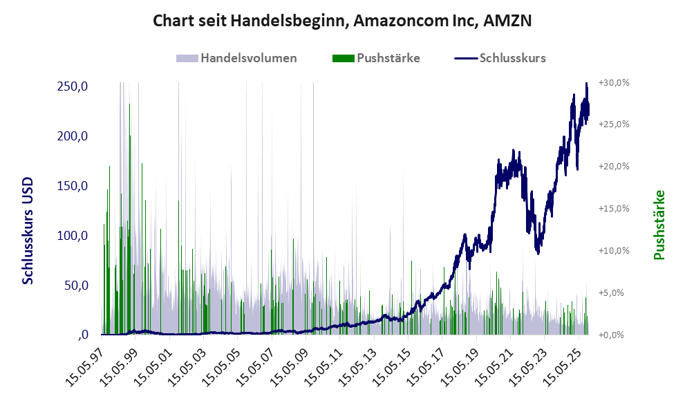 Die Pushstärke ist umso höher, je stärker die Kurse vom durchschnittlichen Verlauf abweichen und daher ein Verdacht auf Kursmanipulation besteht.