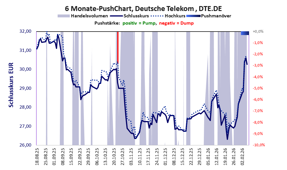 Auch eine blue chip Aktie kann wie jede andere Aktie gepusht werden. Die Frage ist nicht ob, sondern wer pusht und wie ist die Aktie insgesamt zu bewerten. Die der Deutschen Telekom erstklassig trotz gepushten Kurses im Jahr 1999.