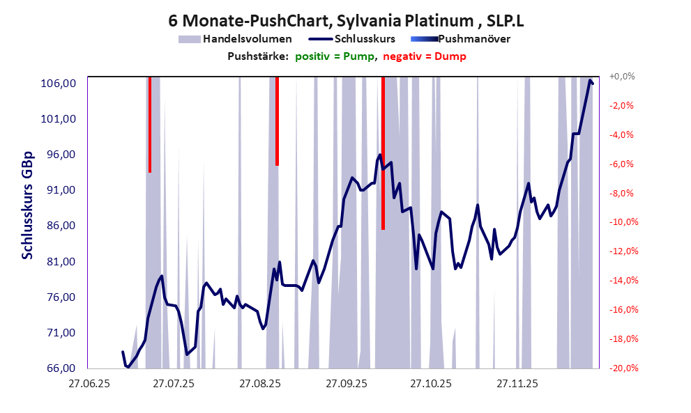 zeigt Pushmanöver während der letzten sechs Monate