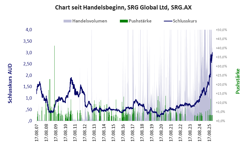 SRG Global ist ein Unternehmen mit einer Standard-Aktie der Klasse I und den Eckdaten: