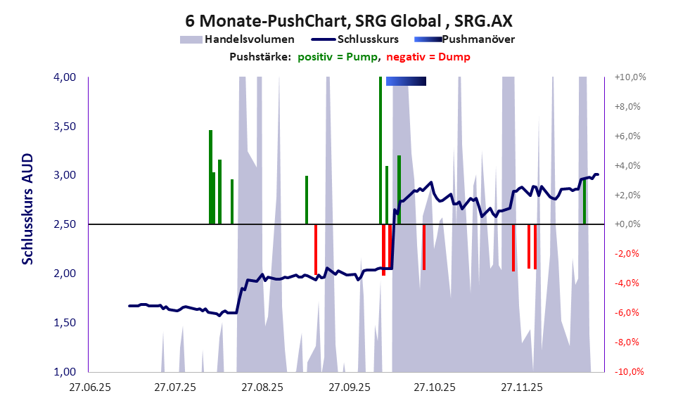 zeigt Pushmanöver während der letzten sechs Monate