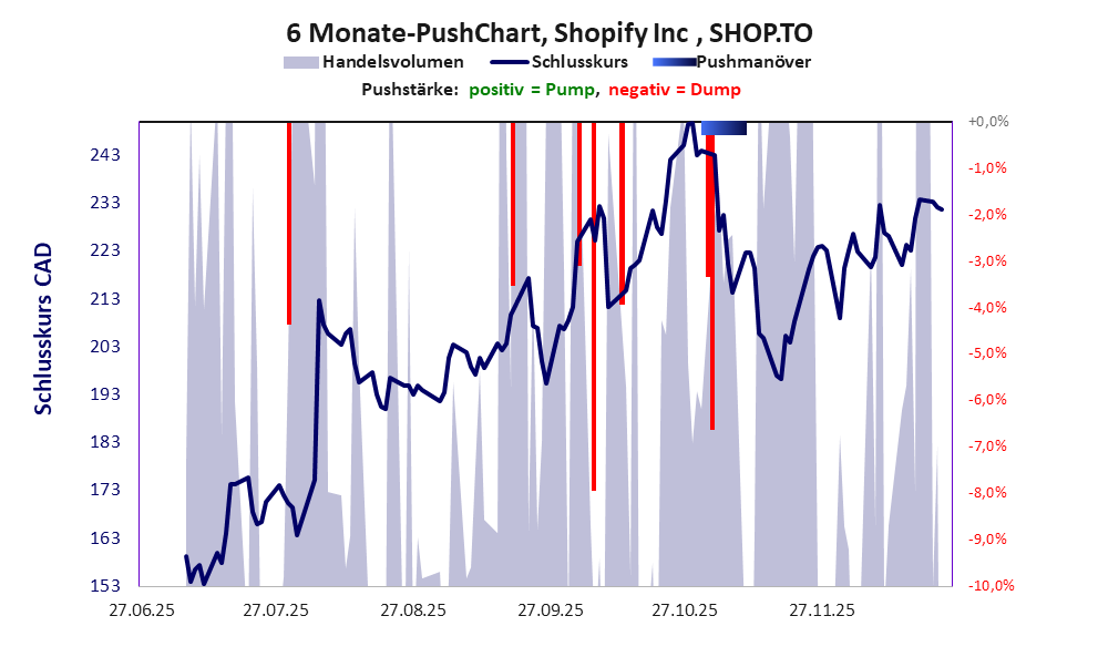 Die Pushstärke ist umso höher, je stärker die Kurse vom durchschnittlichen Verlauf abweichen und daher ein Verdacht auf Kursmanipulation besteht.
