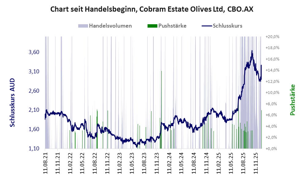 Cobram Estate ist ein Unternehmen mit einer Standard-Aktie der Klasse I und den Eckdaten:
