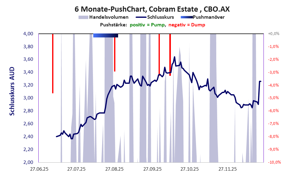 Die Pushstärke ist umso höher, je stärker die Kurse vom durchschnittlichen Verlauf abweichen und daher ein Verdacht auf Kursmanipulation besteht.