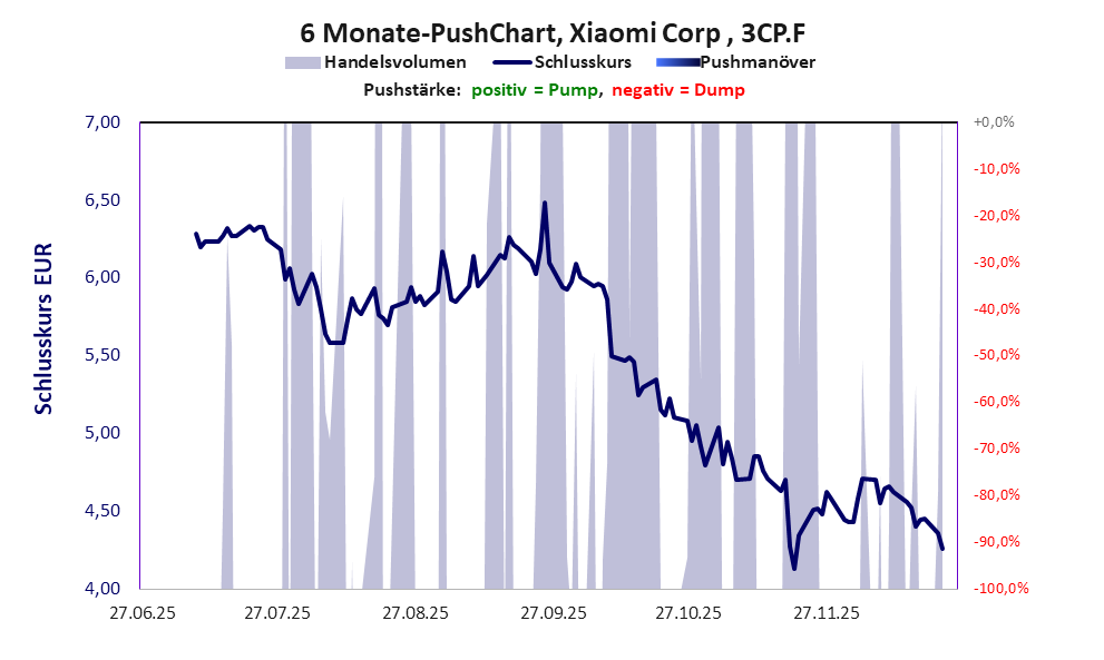 Die Pushstärke ist umso höher, je stärker die Kurse vom durchschnittlichen Verlauf abweichen und daher ein Verdacht auf Kursmanipulation besteht.