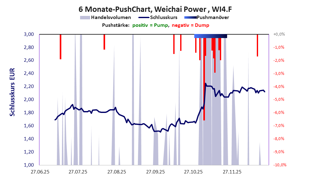 Die Pushstärke ist umso höher, je stärker die Kurse vom durchschnittlichen Verlauf abweichen und daher ein Verdacht auf Kursmanipulation besteht.