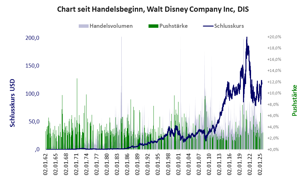Walt Disney ist ein Konzern mit einer Standard-Aktie der Klasse I und den Eckdaten: