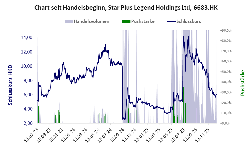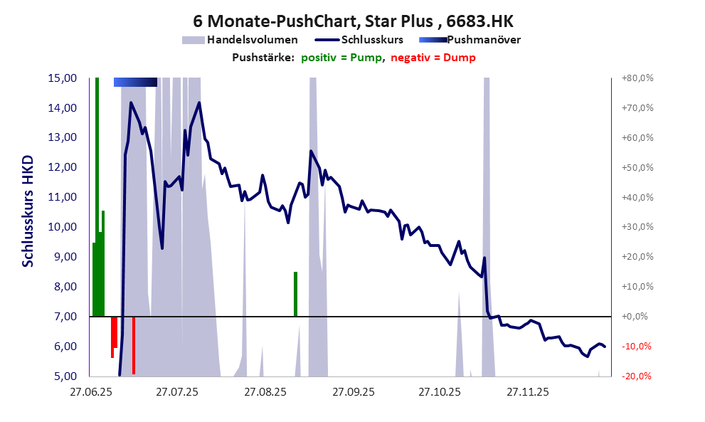 Die Aktie hatte Anfang Juli 2025 einen klaren Pump (+130%,+240% in der Spitze), auf den ein schonender Dump (-30%) folgte. Das hielt den Kurs auf gehobenem Niveau (+80%). Man darf gespannt sein, wie die Akteuere mit der Aktie eines Großunternehmens weiter agieren werden. Für Anleger jedenfalls sehr riskant.