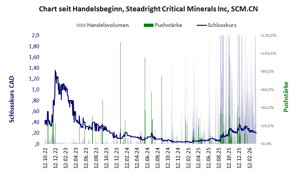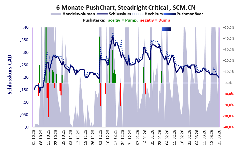 Bei dieser Aktie gibt es 1 Pump & Dump-Manöver. Das tägliche Handelsvolumen betrug an obiger Börse während der letzten drei Monate bis Berichtsdatum: 130.093 Stück, das sind 0,2% der ausgegebenen Aktien. In Aktien der Klasse V darf man grundsätzlich nicht investieren. Es gibt keinen ordentlichen Geschäftsbetrieb. Die Aktie hat nur den Zweck, mit Pushmanövern oder Algotrading an der Börse Kasse zu machen.