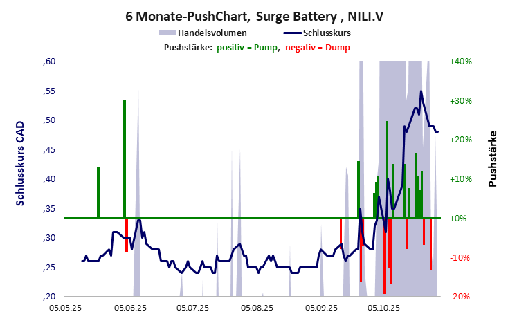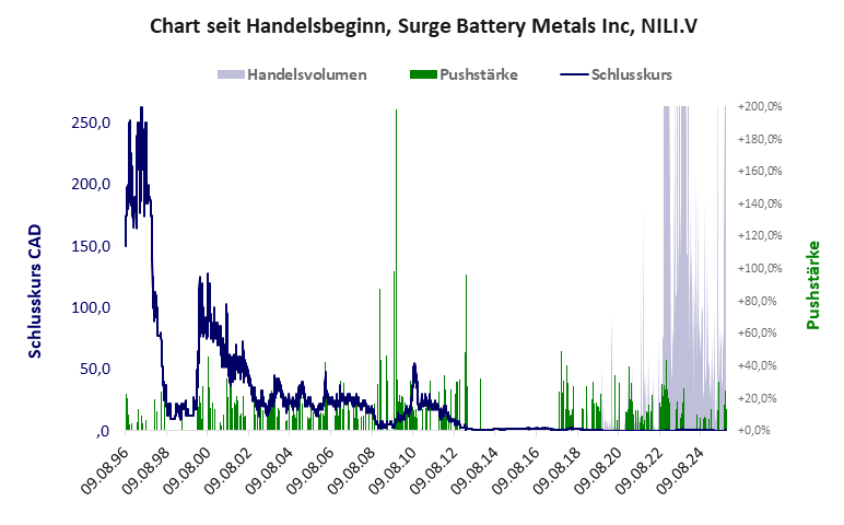 ein ziemlich wertloses Unternehmen mit gepushtem Kurs in großem Netzwerk und laufender Werbung. Surge Battery hat ein kritisches Gesamtscoring und ist ein kleiner Pennystock mit praktisch einem Totalverlust. Das Gesamtvermögen ist überschaubar, die Vermögenswerte scheinen nicht werthaltig zu sein, der Umsatz ist nicht existent, die Ertragslage extrem verlustreich, die Geldverbrennung extrem hoch.