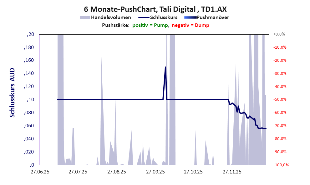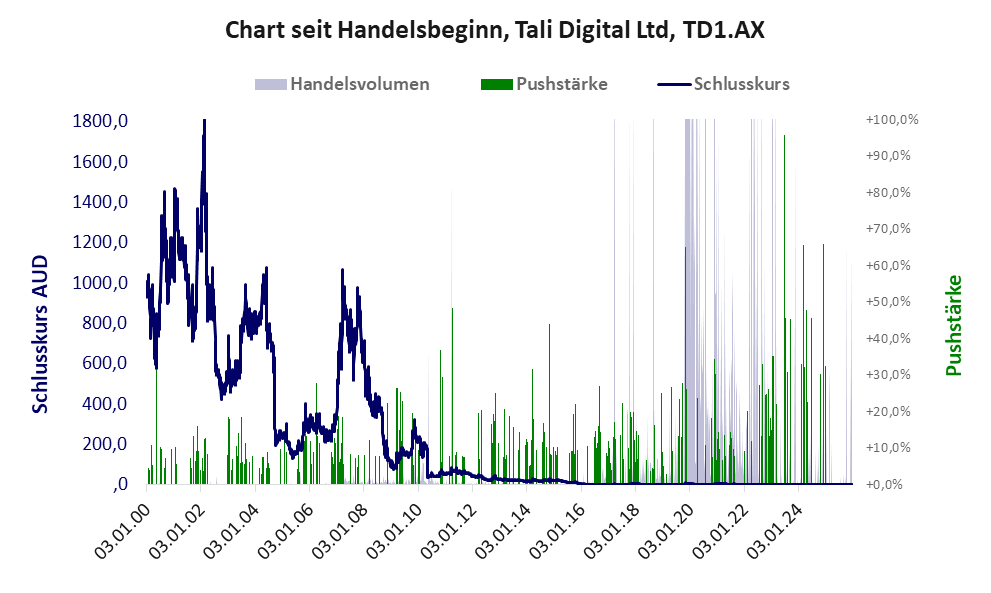 Dieser Aktie liegt das „Refreshmodell“ zu Grunde. Eine Durchsicht aller Geschäftsberichte würde recht sicher zeigen, dass das Unternehmen nie Umsatz und Profit erzielte und die gesamten Explorationskosten unter „Aktiva“ verbuchte. Das heißt, während aller Jahre wurde nichts gefunden, sondern die Investorengelder wurden für erfolglose Explorationsarbeiten verbrannt. Die bescheidene Exploration dient lediglich als Grundlage zur medialen Vermarktung von Erfolgsaussichten, auf eine große Lagerstätte zu stoßen, um damit das nächste Pushmanöver zu befeuern. Bei dieser Aktie liegt das „Inkassomodell“ vor, bei dem der Aktienkurs zu Beginn der Geschichte sein Allzeithoch hat. Die Akteure verkaufen schon zu Beginn nach und nach ihre billigst erworbenen Aktien, so dass der Kurs in verhältnismäßig kurzer Zeit abstürzt. Danach dümpelt der Aktienkurs in den meistn Fällen nahe null dahin und die Aktie dient nur noch kleineren, dennoch gewinnbringenden Pushmanövern und in vielen Fällen dem Algotrading. Dem ersten Einbruch nachfolgende größere Pushmanöver sind aber nicht ausgeschlossen.