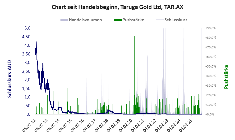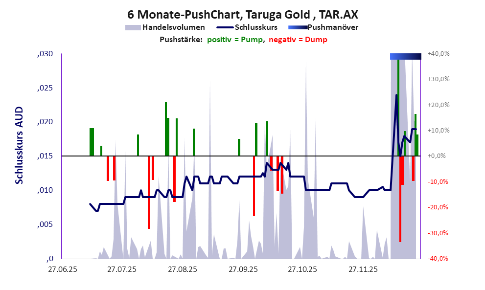 Bei dieser Aktie liegt das „Inkassomodell“ vor, bei dem der Aktienkurs zu Beginn der Geschichte sein Allzeithoch hat. Die Akteure verkaufen schon zu Beginn nach und nach ihre billigst erworbenen Aktien, so dass der Kurs in verhältnismäßig kurzer Zeit abstürzt. Danach dümpelt der Aktienkurs in den meistn Fällen nahe null dahin und die Aktie dient nur noch kleineren, dennoch gewinnbringenden Pushmanövern und in vielen Fällen dem Algotrading. Dem ersten Einbruch nachfolgende größere Pushmanöver sind aber nicht ausgeschlossen.