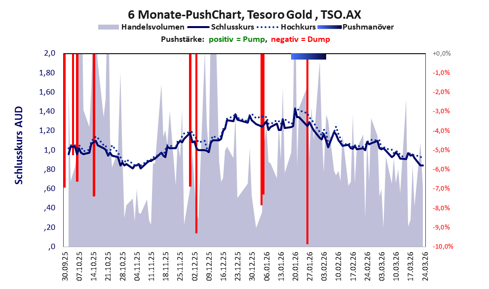Bei dieser Aktie, über die w:o berichtet, gibt es 1 Pump & Dump-Manöver. Das tägliche Handelsvolumen betrug an obiger Börse während der letzten drei Monate bis Berichtsdatum: 325.599 Stück, das sind 0,2% der ausgegebenen Aktien. In Aktien der Klasse V darf man grundsätzlich nicht investieren. Es gibt keinen ordentlichen Geschäftsbetrieb. Die Aktie hat nur den Zweck, mit Pushmanövern oder Algotrading an der Börse Kasse zu machen.