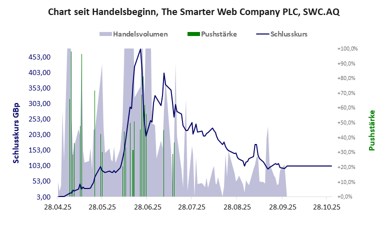 Wieder eine minderwertige Aktie, die mühelos an der FWB einbezogen wurde. The Smarter hat ein schlechtes Gesamtscoring und ist ein Pennystock mit Kursgewinn. Das Gesamtvermögen ist karg, die Vermögenswerte scheinen nicht vorhanden zu sein, der Umsatz ist nicht existent, die Ertragslage schlecht, die Geldverbrennung ziemlich hoch.