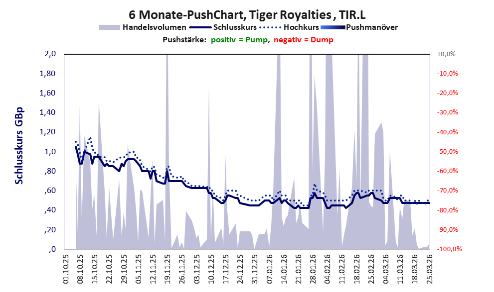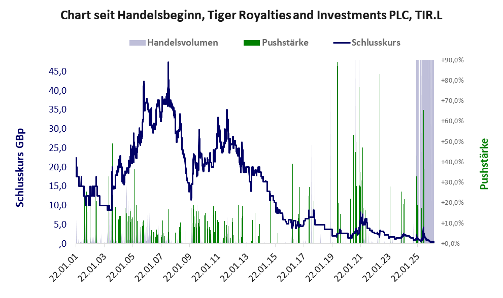 Bei dieser Aktie gibt es 2 Pump & Dump-Manöver. Das tägliche Handelsvolumen betrug an obiger Börse während der letzten drei Monate bis Berichtsdatum: 5.291.341 Stück, das sind 0,6% der ausgegebenen Aktien. In Aktien der Klasse V darf man grundsätzlich nicht investieren. Es gibt keinen ordentlichen Geschäftsbetrieb. Die Aktie hat nur den Zweck, mit Pushmanövern oder Algotrading an der Börse Kasse zu machen.