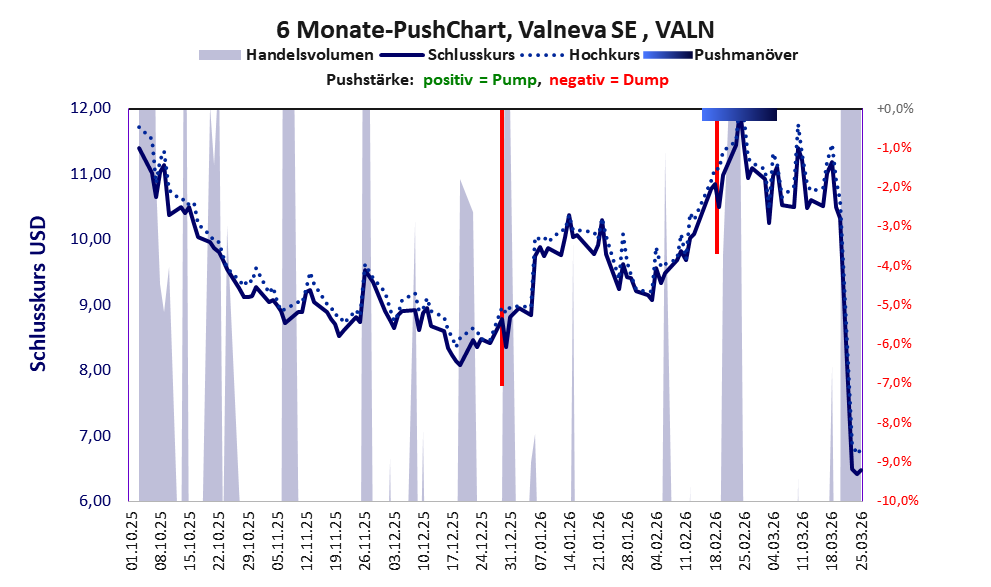 zeigt Pushmanöver während der letzten sechs Monate