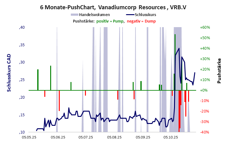 Die Pushstärke ist ein Maß, wie stark der Handelskurs der jüngsten Zeit vom Durchschnitt der Vergangenheit abweicht, und belegt somit Pushaktivitäten