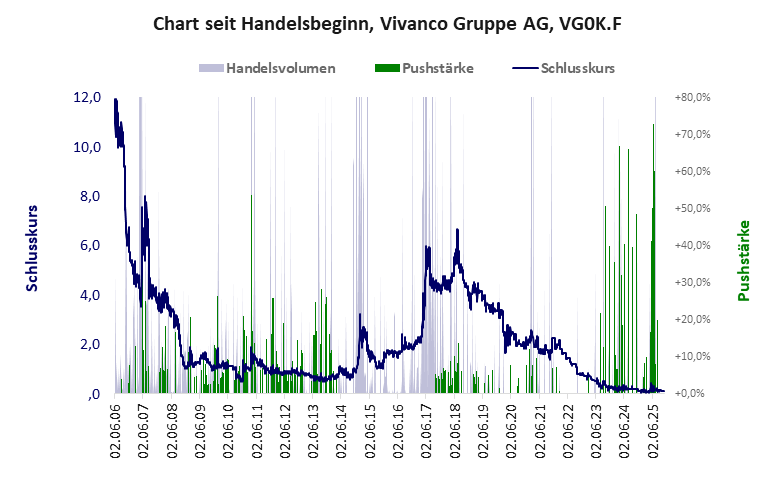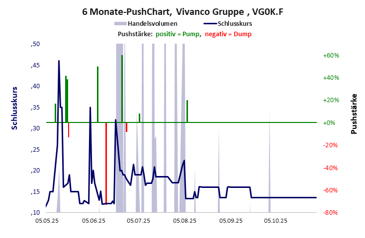 Vivanco Gruppe hat ein schwaches Gesamtscoring und ist ein mickriger Pennystock mit praktisch einem Totalverlust. Das Gesamtvermögen ist überschaubar, die Vermögenswerte scheinen wenig werthaltig zu sein, der Umsatz ist beträchtlich, die Ertragslage schlecht, die Geldverbrennung sehr hoch.