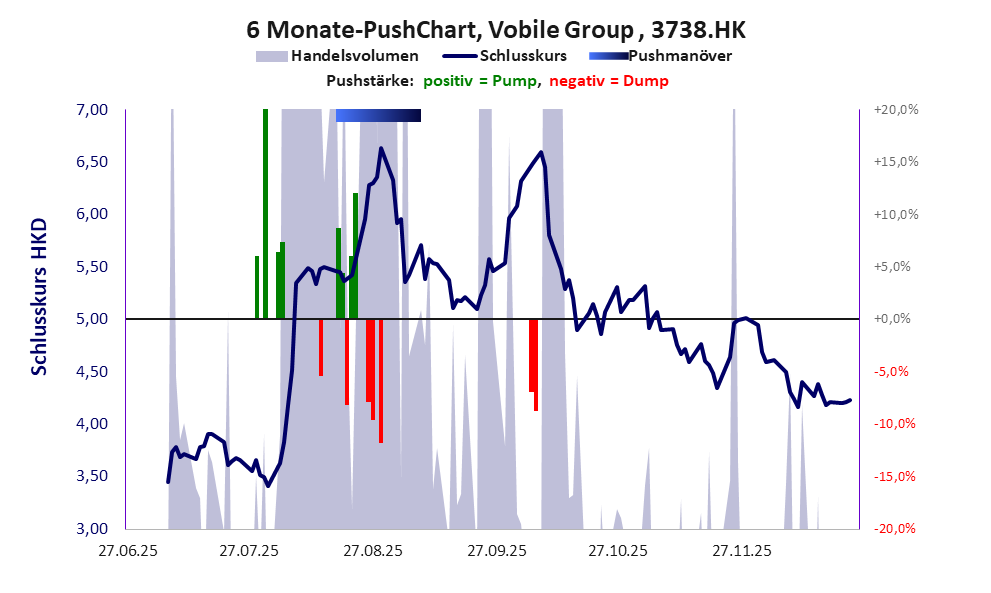 Die Pushstärke ist umso höher, je stärker die Kurse vom durchschnittlichen Verlauf abweichen und daher ein Verdacht auf Kursmanipulation besteht.