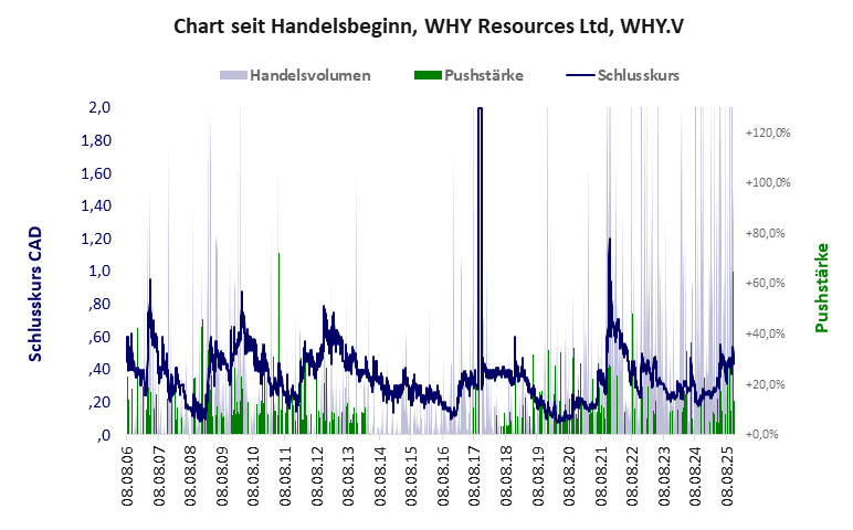Die Besprechung der Charttechnik durch Goldinvest ist professionell, aber verschossenes Pulver für eine Müll-Aktie. WHY Resources hat ein kritisches Gesamtscoring und ist ein kleiner Pennystock mit einem erträglichen Kursverlust. Das Gesamtvermögen ist karg, die Vermögenswerte scheinen sehr werthaltig zu sein, der Umsatz ist nicht existent, die Ertragslage extrem verlustreich, die Geldverbrennung extrem hoch.