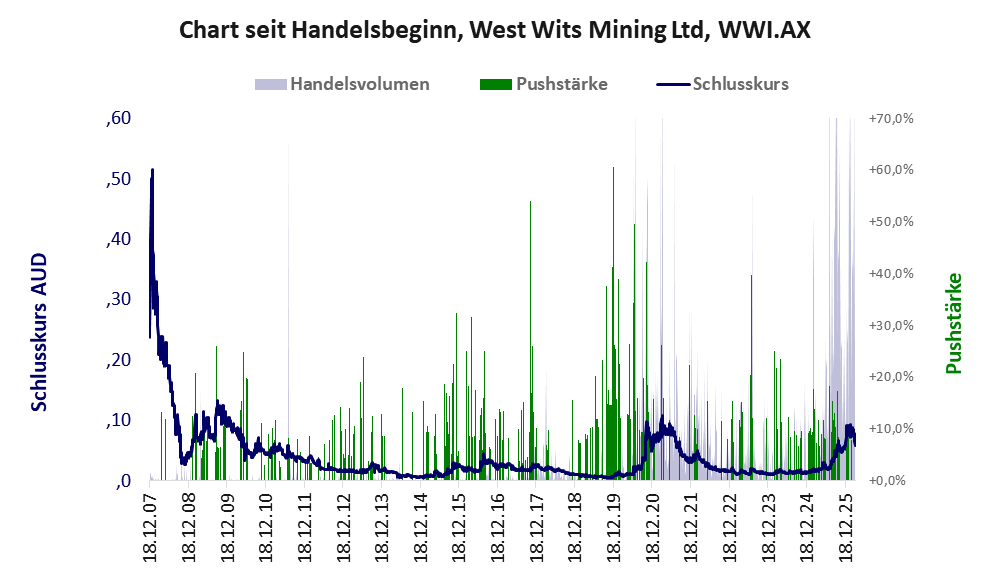 Bei dieser Aktie, über die w:o berichtet, liegt das Inkassomodell vor. Das tägliche Handelsvolumen betrug an obiger Börse während der letzten drei Monate bis Berichtsdatum: 23.131.462 Stück, das sind 0,5% der ausgegebenen Aktien. In Aktien der Klasse V darf man grundsätzlich nicht investieren. Es gibt keinen ordentlichen Geschäftsbetrieb. Die Aktie hat nur den Zweck, mit Pushmanövern oder Algotrading an der Börse Kasse zu machen.